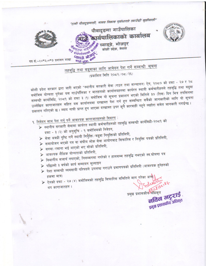 » तहबृद्बि तथा बढुवाका लागि आवेदन पेश गर्ने सम्बन्धी सूचना ।