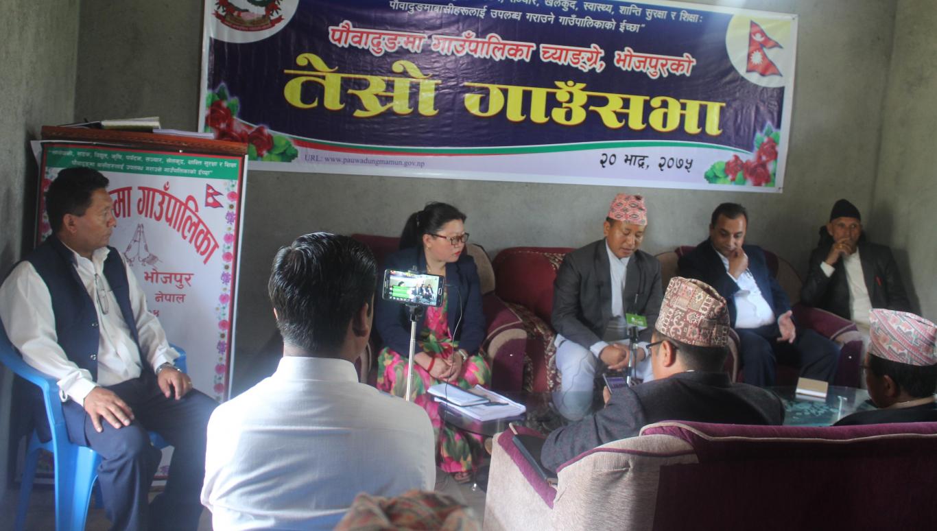 पौवादुङमा गाउँपालिकाको आ.व. ०७४/०७५ को बजेट,निति तथा कार्यक्रमहरुको बृहत सार्वजनिक सुनुवाईको एक झलक।